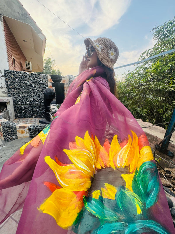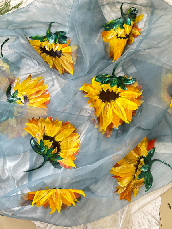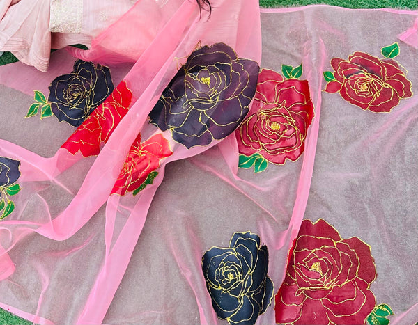 Mukhi – Sky Blue Hand Painted Organza Dupatta